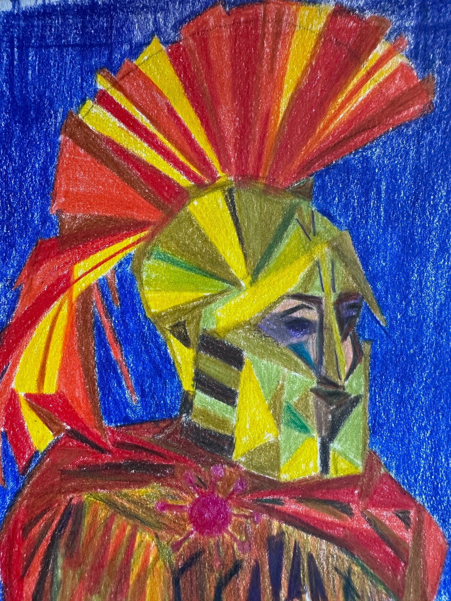 Bronze-encased face and the horsehair plume